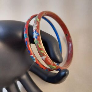 Add a touch of elegance with this vibrant Cloisonné bangle set. Featuring intricate red and blue designs, these bangles are perfect for any occasion.