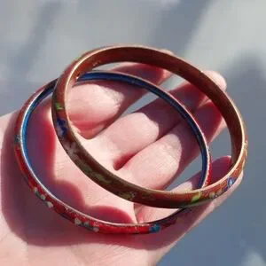 Add a touch of elegance with this vibrant Cloisonné bangle set. Featuring intricate red and blue designs, these bangles are perfect for any occasion.