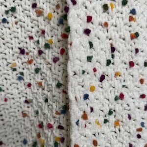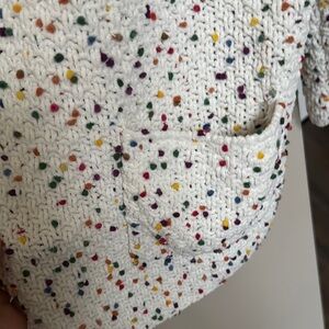 Cozy knit cardigan with colorful speckles. Open front design. Perfect for layering.