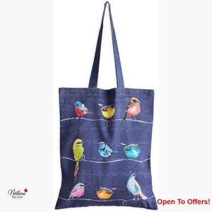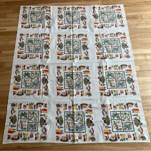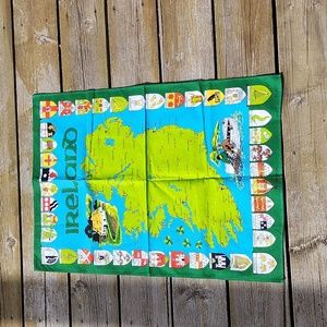 Vibrant crochet placemat with a circular pattern. Features black, yellow, blue, and pink colors.