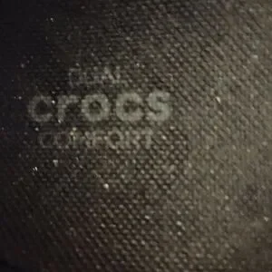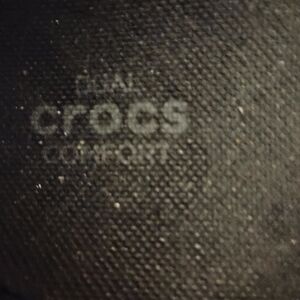 Vibrant Crocs clogs with a floral pattern. Features shades of blue, purple, yellow, and green.