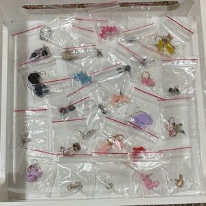 Bundle of earrings, most never worn. Includes Oreo cookies, Gumball Machines, Gummy Bears, Rubber Duckies, Safety pins and so much more. Super fun set.