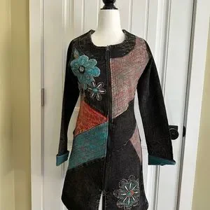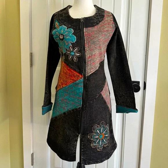 Elevate your style with this colorful embroidered jean jacket. Featuring intricate designs and a blend of vibrant hues, it's perfect for any occasion.