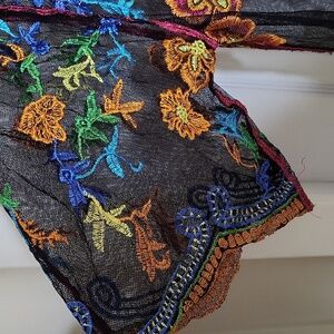Vibrant sheer kimono with colorful floral embroidery. Perfect for layering. This fits more like a 12/14.