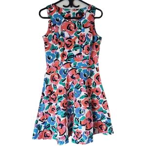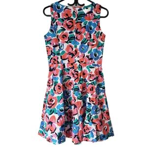 This floral sleeveless dress combines vibrant colors to offer a stylish and comfortable option for warm weather. Features a mixed-color floral pattern ideal for casual outings.