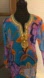 Colorful Floral Tunic or Beach Coverup with Gold Details