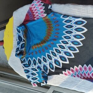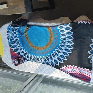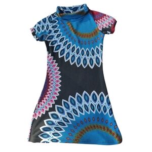 Colorful Geometric Pattern Dress Short Sleeves Soft