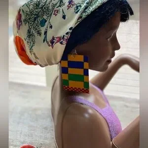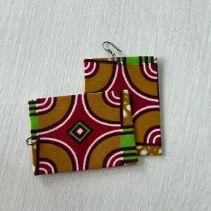 Add a pop of color to your outfit with these vibrant geometric pattern Handcrafted earrings. Featuring a mix of red, green, and gold hues, these earrings are perfect for any occasion.
