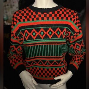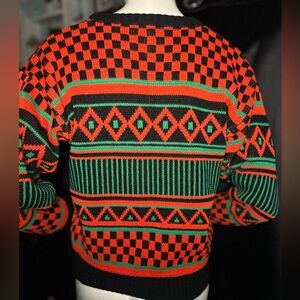 Stand out with this vibrant sweater featuring a bold geometric pattern. Perfect for adding a pop of color to your wardrobe.