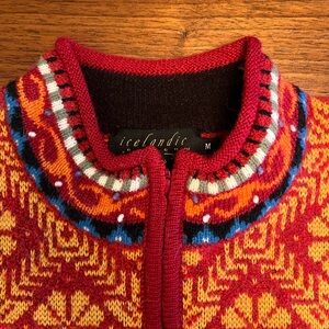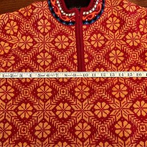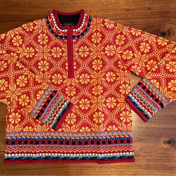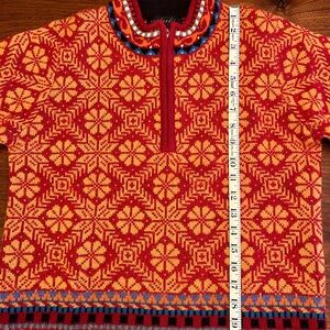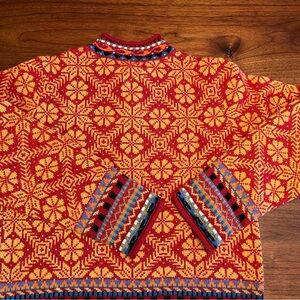 Stay cozy and stylish with this vibrant sweater featuring a striking geometric pattern. Perfect for adding a pop of color to your wardrobe.