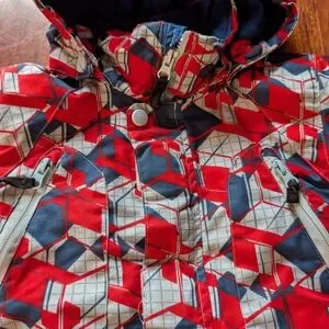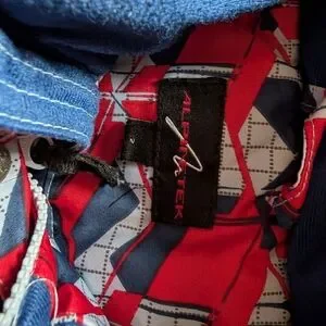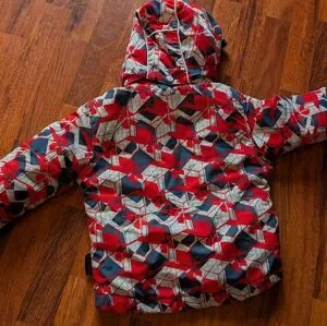 Alpinetek red and blue geometric patterns winter jacket. Size 2.