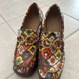 Elevate your style with these colorful geometric loafers. Perfect for adding flair to any outfit, these shoes offer both comfort and fashion.