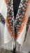 Vibrant design with geometric patterns in orange, blue/torquoise , and black on a white base. Perfect for adding a pop of color to any outfit