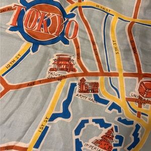 Vibrant strapless top with geometric patterns. Features blue, orange, and green colors.