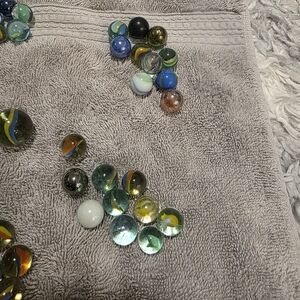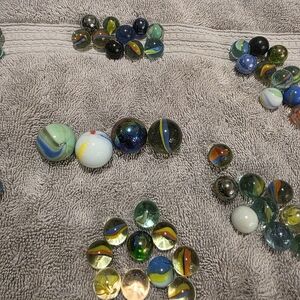 Explore endless fun with this vibrant set of glass marbles. Perfect for kids, these marbles come in a variety of colors including blue, green, and black. Ideal for games and creative play.