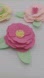 Set of three vibrant handmade paper flowers in pink, yellow, and peach with green leaves. Ideal for decoration or crafts.