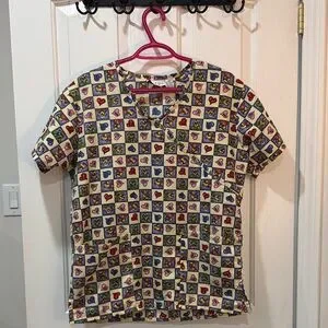Colorful Heart Pattern Scrub Top