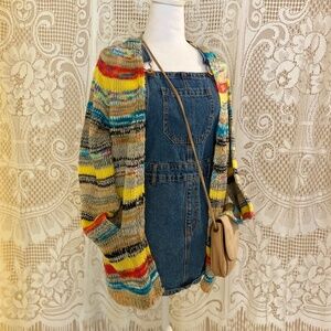 A truly charming colorful knit cardigan with an ultra-soft feel and beautiful blended hues. This piece has an effortless, creative vibe — very much the kind of cardigan you’d imagine a cool high school art teacher wearing in the best way. Lightweight, cozy, and easy to layer, it’s perfect for year-round wear, especially spring and transitional seasons when you want softness without heaviness.