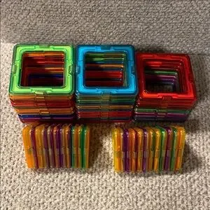 Explore creativity with this vibrant set of magnetic building blocks. Perfect for imaginative play, these blocks come in red, blue, green, and orange. Ideal for young builders.