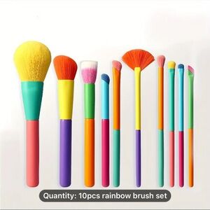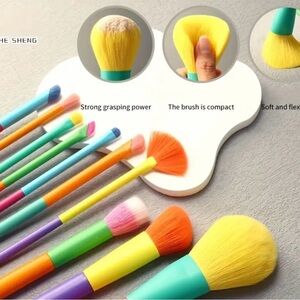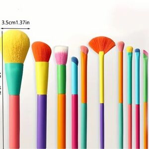 Vibrant makeup brush set with multicolored handles and bristles. Perfect for adding a pop of color to your beauty routine.