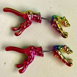Add a playful touch to your child's outfit with this colorful animal stud earrings set. Featuring vibrant pink and green hues, these earrings are perfect for any occasion.