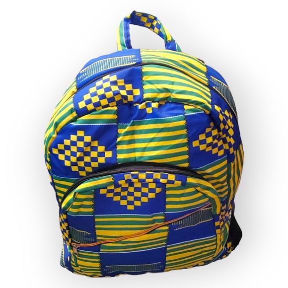 Vibrant and stylish, this colorful patchwork backpack is perfect for everyday use. Featuring a unique design with blue, yellow, and green patterns, it adds a pop of color to any outfit.