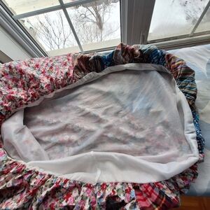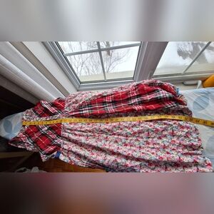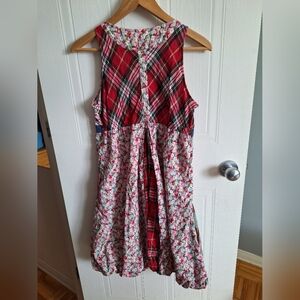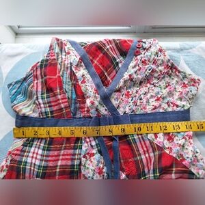 This vibrant dress features a unique patchwork design with plaid and floral patterns. Perfect for adding a pop of color to your wardrobe.
