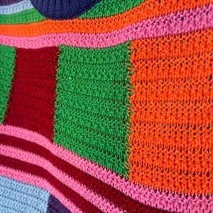 Vibrant and stylish, this colorful patchwork knit tank top is perfect for adding a pop of color to your wardrobe. Featuring a mix of blue, green, red, purple, and orange, this top is both eye-catching and versatile. Ideal for casual outings or layering, it offers comfort and a unique fashion statement.
