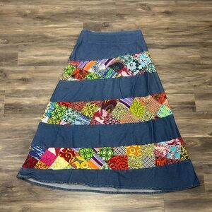 Embrace vibrant style with this colorful patchwork maxi skirt. Perfect for adding a pop of color to your wardrobe.
