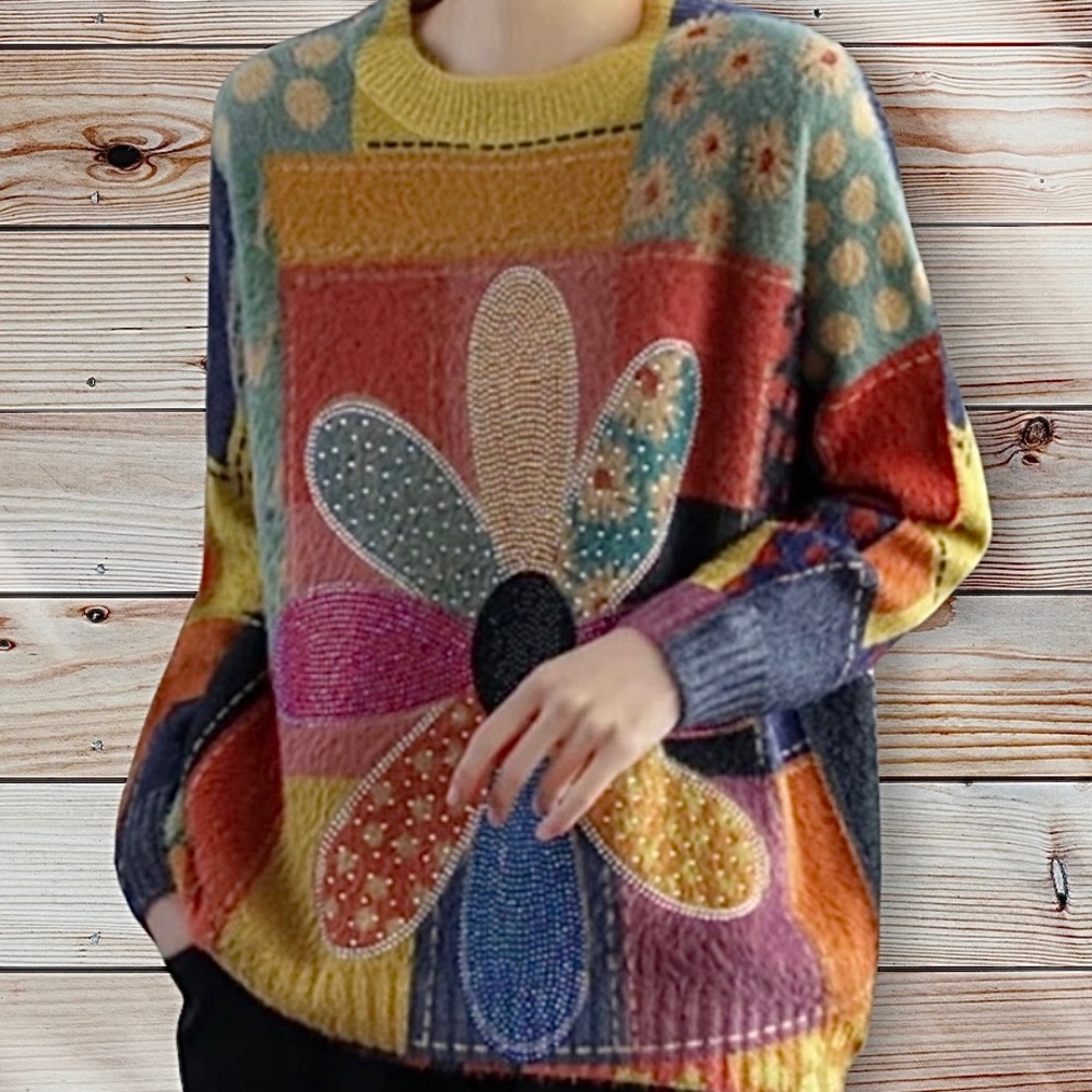 This colorful daisy sweater is soooo soft. You'll never want to take it off!!