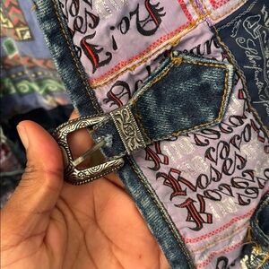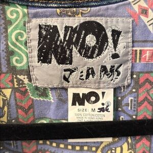 Vibrant patchwork vest with a mix of patterns. Features pink, blue, and green hues.