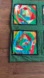 Vibrant patchwork quilt featuring a variety of colors with a green border. Perfect for adding a splash of color to any room.
