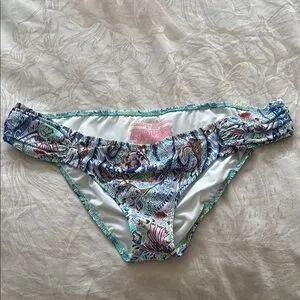 Vibrant bikini bottom with a colorful pattern. Perfect for beach days.