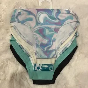 Brand new never worn. Set of bikini bottoms with vibrant patterns. Includes a swirl design and floral print. Perfect for beach days.