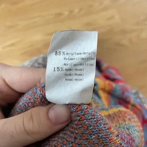 - brand is “alphalet DUGUY” and sweater is an acrylic + modal blend