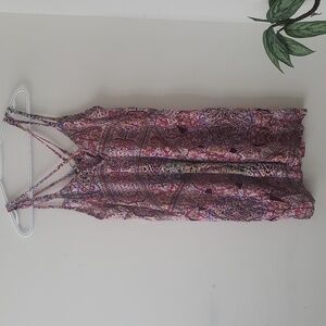 Chic mini dress with vibrant patterns. Features a strappy design. Ideal for casual wear.