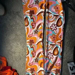 Bright and fun pants with a vibrant pattern. Perfect for adding a splash of color to any outfit.