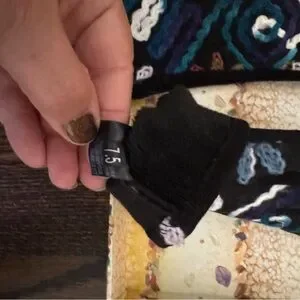 Vibrant gloves with a colorful pattern. Features shades of blue, purple, and black.