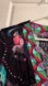 This vibrant dress features a striking combination of black, pink, and teal colors, perfect for making a statement. The intricate pattern adds a unique touch to your wardrobe. 100% viscose. NO SIZE TAG. Please check measurements.