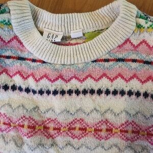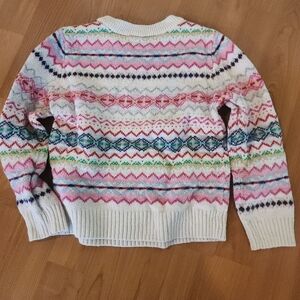 Stay cozy and stylish with this colorful patterned sweater. Perfect for adding a pop of color to your wardrobe.