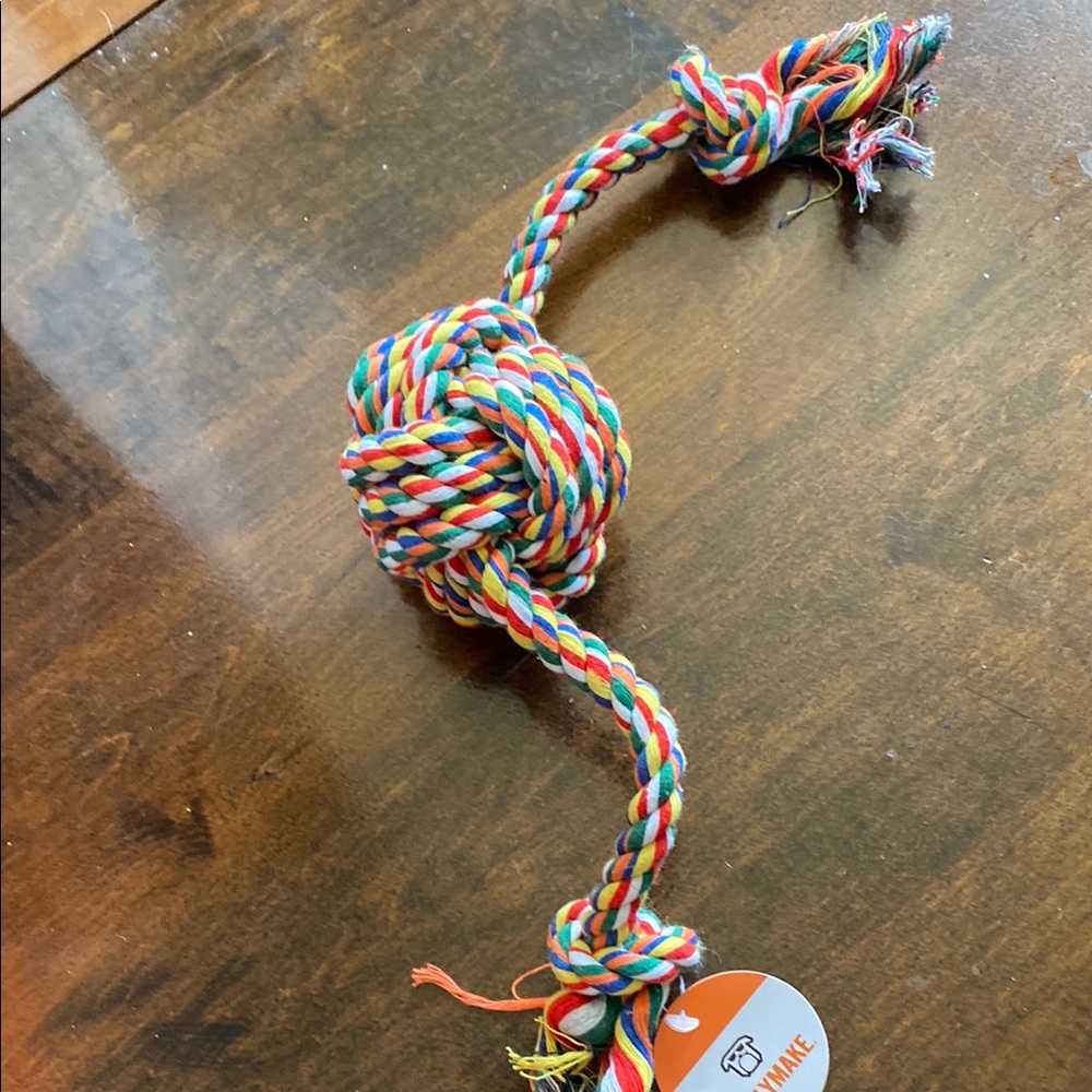 Vibrant rope dog toy with a knot design. Perfect for playtime.