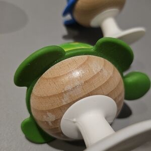 Delight your child with this vibrant sea creature toy set. Featuring an orange octopus, a blue whale, and a green turtle, these toys are perfect for imaginative play. Safe and fun for kids. They rattle and have a suction cup to secure to any smooth surface. Gently used, see photos for slight signs of wear.