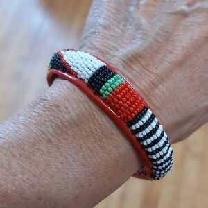 Colorful Seed Bead Bangle Bracelet Black Red White Yellow
