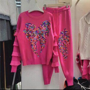 Colorful Sequin Butterfly Sweatshirt & Jogger Set – Size L, XL