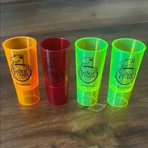 Brighten up your party with this vibrant set of shot glasses. Featuring bold orange, red, and green colors, these glasses are perfect for any celebration. Enjoy a fun and lively atmosphere with these eye-catching party essentials.