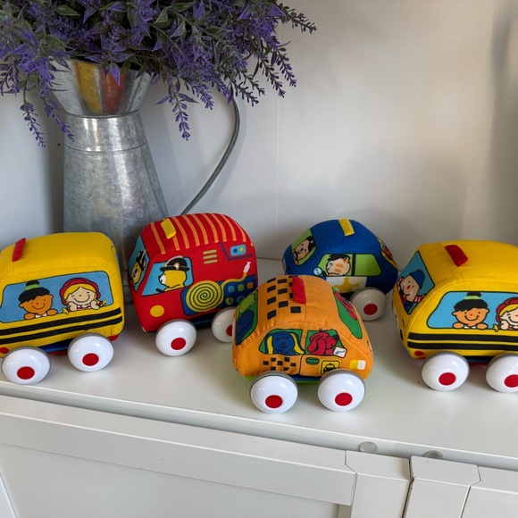 Delight your child with this vibrant set of soft toy cars. Featuring bright yellow, red, and blue colors, these toys are perfect for imaginative play. Safe and fun for kids.