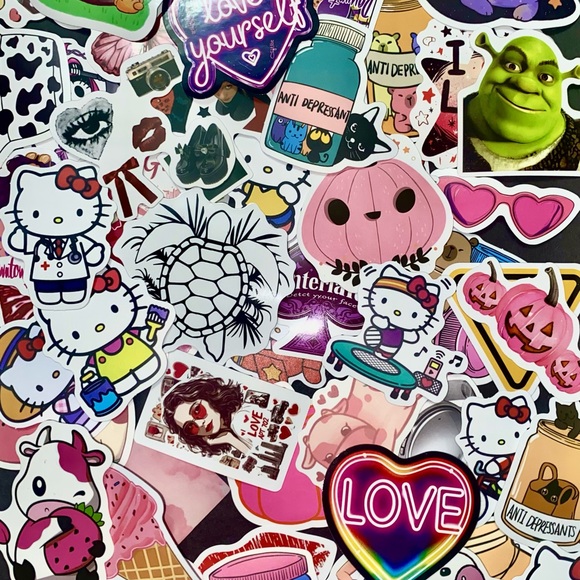 Vibrant and fun sticker pack featuring various designs. Perfect for decorating notebooks, laptops, and more. 60 pc