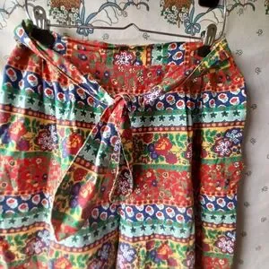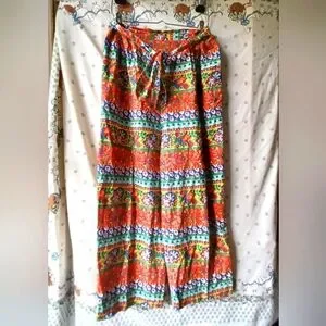 Vibrant straight leg pants featuring a lively multicolor pattern. Perfect for adding a pop of color to your wardrobe.