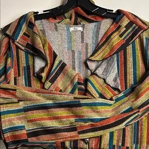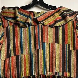 Vibrant dress with ruffle details. Features multicolor stripes. Empire waist. No pockets. Size 3X PTP 23” Length 44”