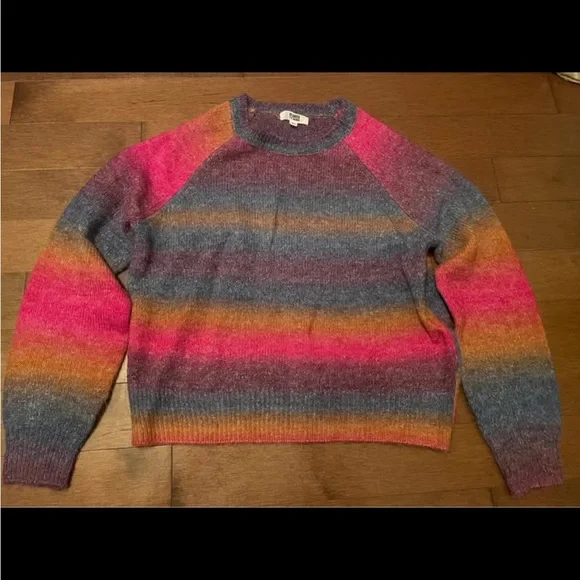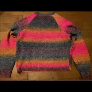 Vibrant sweater with pink, orange, and blue stripes. Perfect for adding color to your wardrobe.